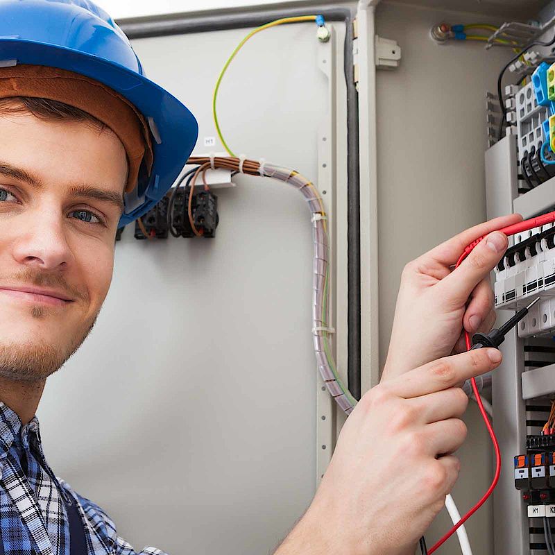 Als Elektriker – oder auch Elektroniker oder Elektroinstallateur – bist du der Fachmann für Strom. Du installierst, wartest und reparierst elektrische Anlagen und montierst Leitungen, Leuchten und Schaltkästen. Auch auf Baustellen und in Werkstätten bist du für die elektrischen Systeme zuständig. Außerdem gewährleistest du die Sicherheit für Kunden und Mitarbeiter. Als Betriebselektriker bist du innerhalb eines Betriebs für alles Elektrische zuständig. Das heißt, du montierst, wartest und reparierst die verwendeten Maschinen und Geräte und überwachst Mess- und Steuerungsanlagen.